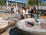 Badekappe und Schwimmbrille zu kalt war) über die Brunnenfassung bis zu