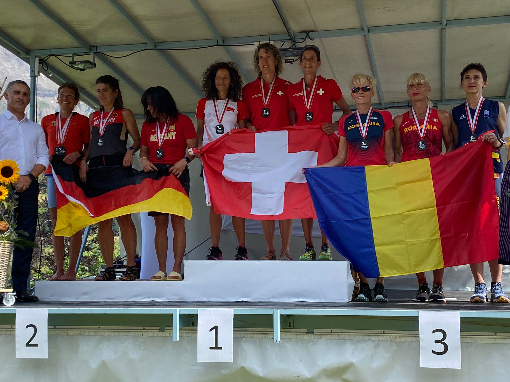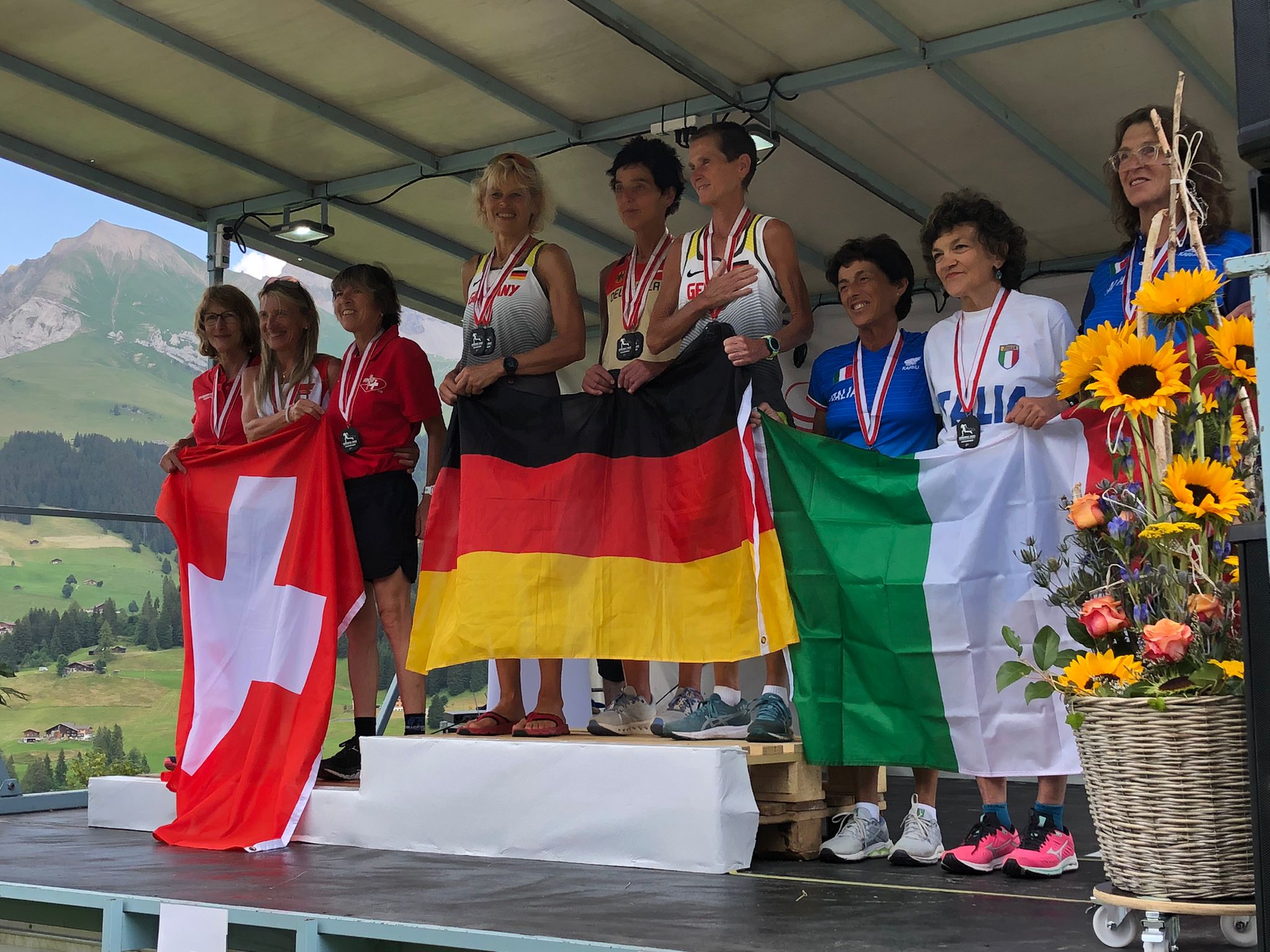 Luzia entschied sich auch ziemlich spät für eine Teilnahme am EM-Berglauf. Aber immerhin musste sie nicht «Open» laufen ?. Nach einer Stunde und 6 Sekunden erreichte sie das Ziel als 10. ‘ bei den W50, im genau gleichen Rang wie die Schreibende bei den W60, aber 6 Minuten vor dieser. Beide unsere Zeiten waren aber gut genug, um den Schweizer Senioren-Frauen zur Gold- (Luzia) resp. Silbermedaille (Jacqueline) zu verhelfen. Bei den W60 waren die deutschen Frauen erwartungsgemäss unschlagbar. Wir Schweizerinnen (Priska Buob, Rita Bucher, welcher ein Superlauf gelang und ich) profitierten aber von unserer Ausgeglichenheit. So konnten wir z.B. die italienischen Frauen hinter uns lassen. Ich persönlich erwischte nicht meinen besten Tag – ich gab aber nicht auf und kämpfte mich durch – es hat sich gelohnt.