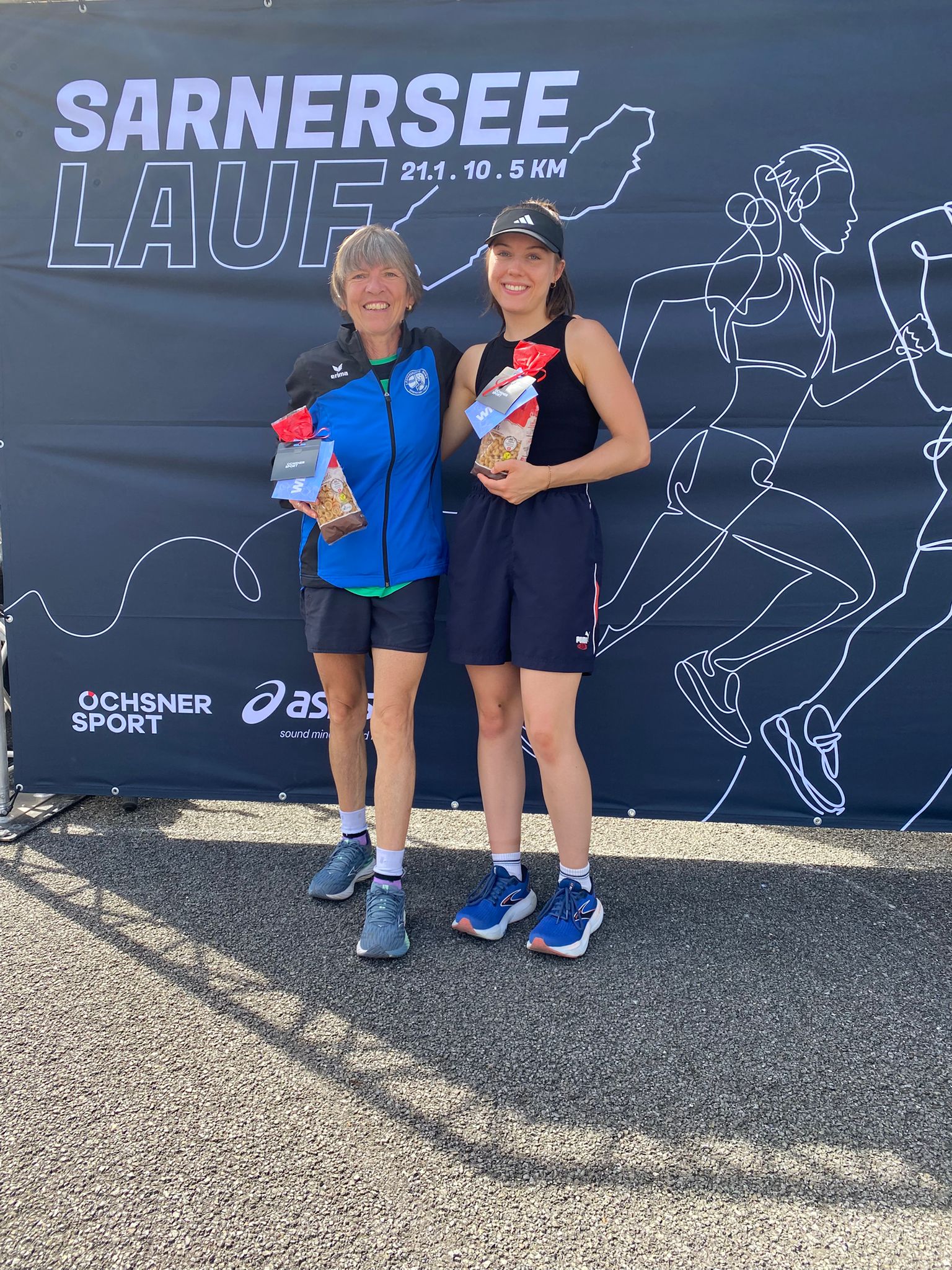 Mir lief es überraschend gut. Eine Zeit möglichst nahe bei 1h40 war mein Ziel, dass dies wahr wurde, und erst noch von der Seite mit einer „3“ am Anfang, nahm ich freudig zur Kenntnis. Mit nur 14 Sekunden Rückstand auf Beatrice Odermatt (u.a. Siegerin W 60 beim diesjährigen Two Oceans-Marathon) erreichte ich bei den W 60 in 1h39.39 das Ziel-Häuschen auf der Sarner Rundbahn. (An dieser Stelle sei erwähnt, dass uns aber W65-Siegerin Monika Kaufmann deutlich distanzierte. Chapeau!). Eine andere schöne Geschichte sei an dieser Stelle auch noch erwähnt: Es gab nämlich eine Gebenstorfer Kategoriensiegerin zu feiern: an ihrem ersten Halbmarathon erreichte die 19-jährige Amélie Killer (Untersulz/Sulzmatt) in 1.45 nicht nur eine tolle Zeit, sie liess dazu gleich auch noch alle ihre 20 Kategorien-Gegnerinnen (U20W) hinter sich. Bravo Amélie! Ganz vorne hatte die Veranstaltung Weltklasse-Affiche: Zwei, welche sich auf den New York-City-Marathon vorbereiten, Matthias Kyburz und Fabienne Schlumpf, dominierten in 1h05 bzw. 1h15 das Gesamtklassement.