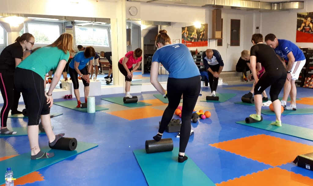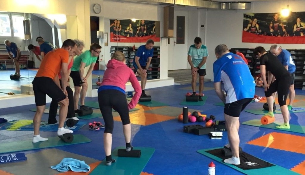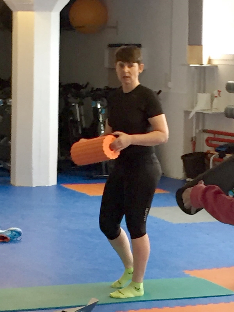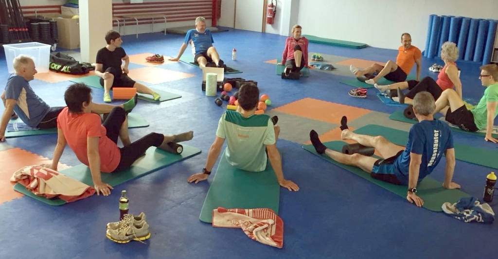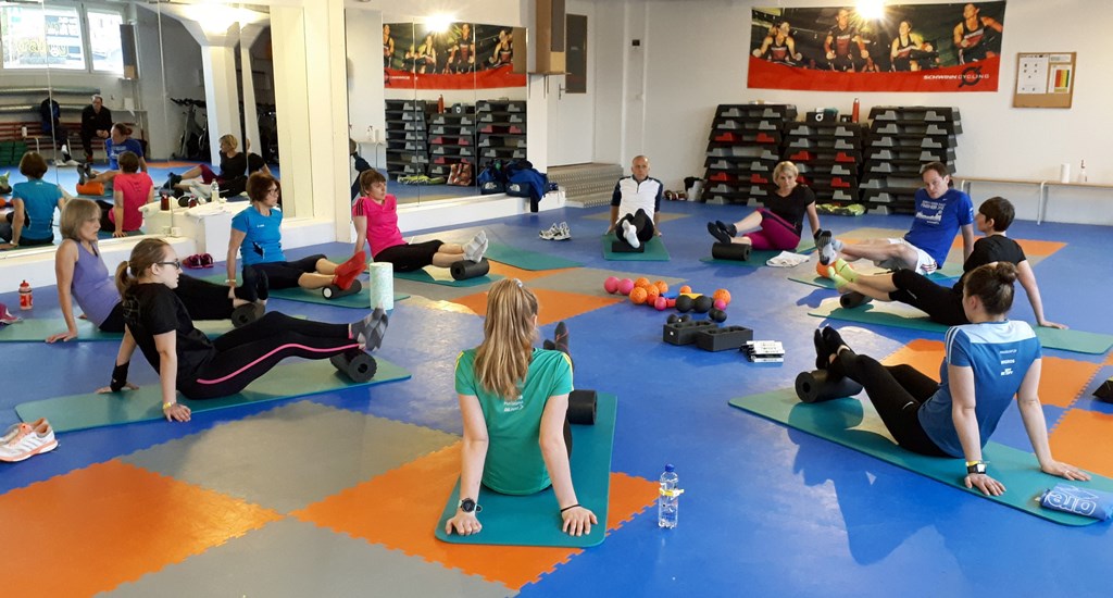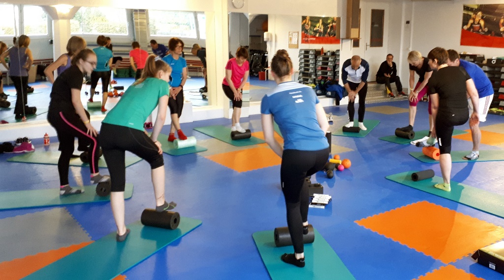Am Nachmittag wurden wir im Fitnesscenter Turgi in zwei Gruppen aufgeteilt von Heidi Gugliota von der XH Physio zu einem Black Roll begrüsst. Erstaunlich wo wir überall Faszien haben die auch unsere Aufmerksamt möchten. Sie danken es uns durch viel kleinere Verletzungsgefahr und bessere Leistungen. Verspannungen könne gelöst werden von der Fuss- bis zur Nackenmuskultur, insbesondere aber im Gesäss- und Rückenbereich. Oft braucht es gar nicht so viel Kraft wie man beim Beobachten von gewissen Leuten in den Fitnesscentern meinen könnte. In die Rollen kann man auch ein Vibrationselement einbauen. Damit kann man Scherzen beim Training überlisten. Wir konnte allerlei Black Roll Produkten ausprobieren und haben grossen Spass gehabt.