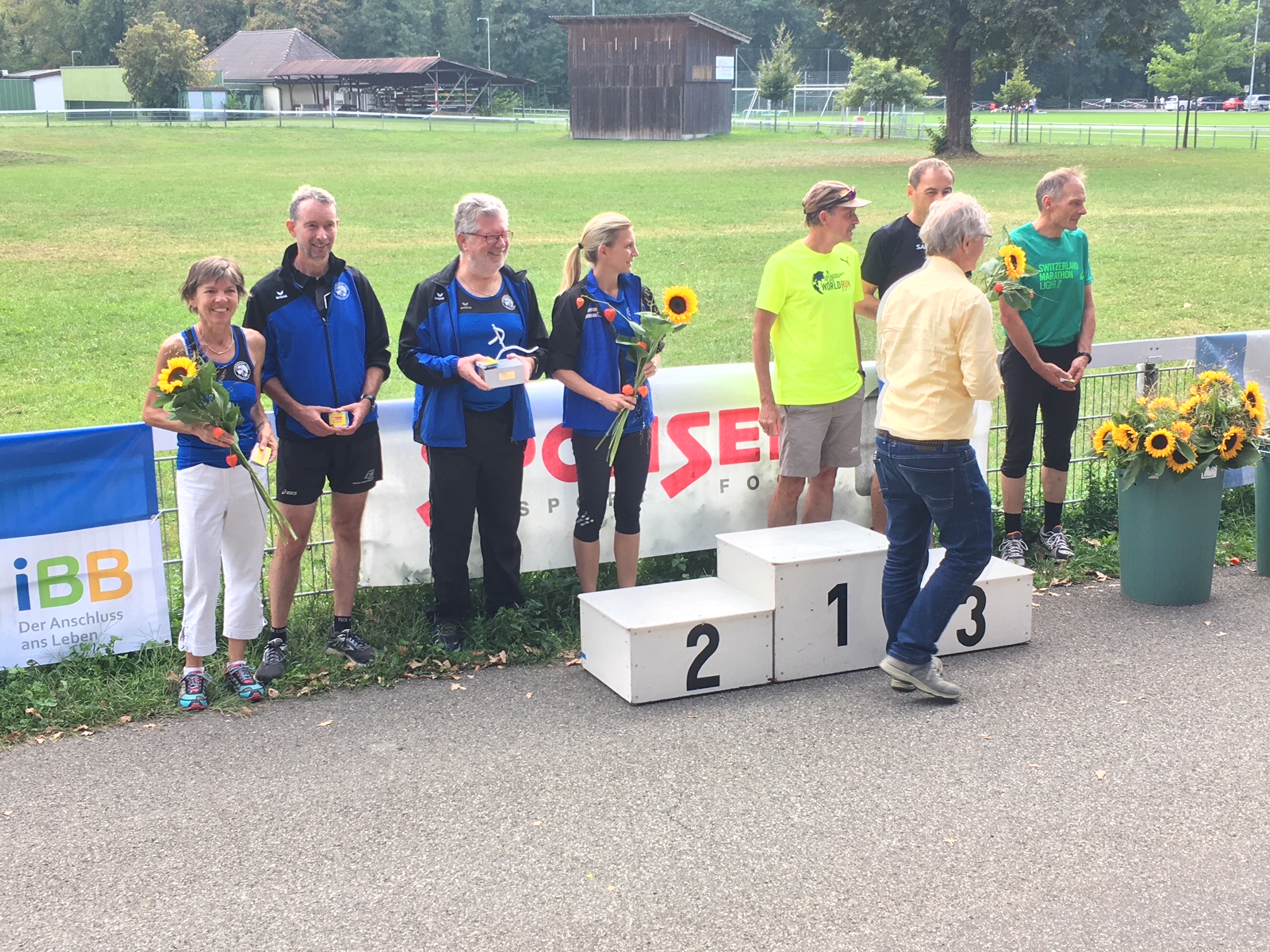 Pünktlich um 13 Uhr 30 wurde zur Rangverkündigung gestartet (der letzte Start dieses Anlasses)! Stadtrat Willy Däpp, auch ein Läufer, richtete höchstpersönlich einige Worte an die Läufergemeinde und erwähnte nicht ohne Stolz, dass auch er, anlässlich des Sponsorenlaufes für Pro Infirmis, 23 Runden gelaufen sei. Höhepunkt aus LG Horn-Sicht war dann die Trophäen-Übergabe für den 2. Rang. Nach den Schwarzwald-Pokalläufen und den Ekiden-Staffeln, welche nun doch schon einige Zeit zurückliegen, war es endlich wieder mal so weit: eine kleine Läufer-Statue erhielten wir und wir müssen wohl demnächst beim Gemeinderat Gebenstorf auch noch eine Vitrine im Gemeindesaal beantragen!
