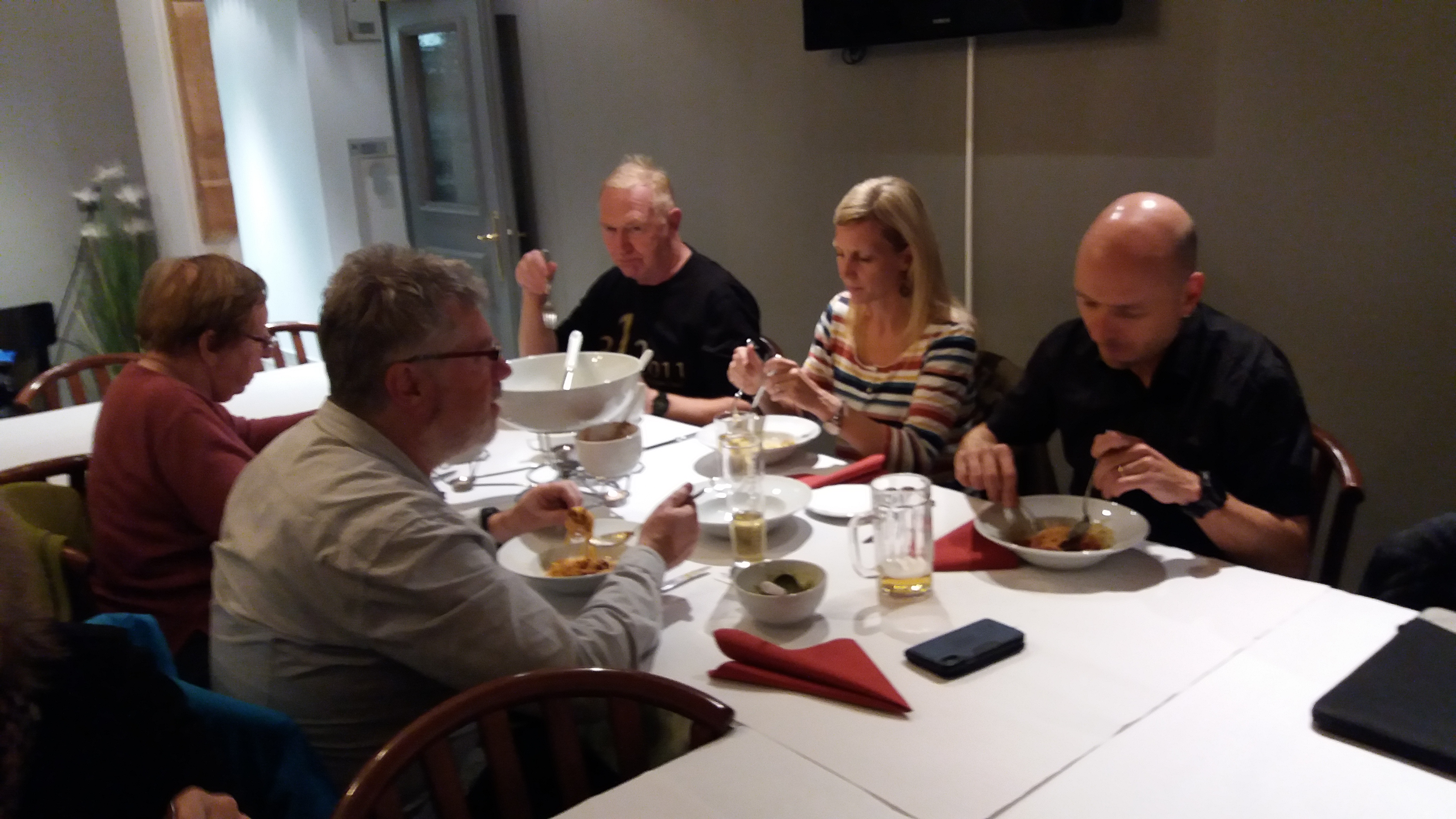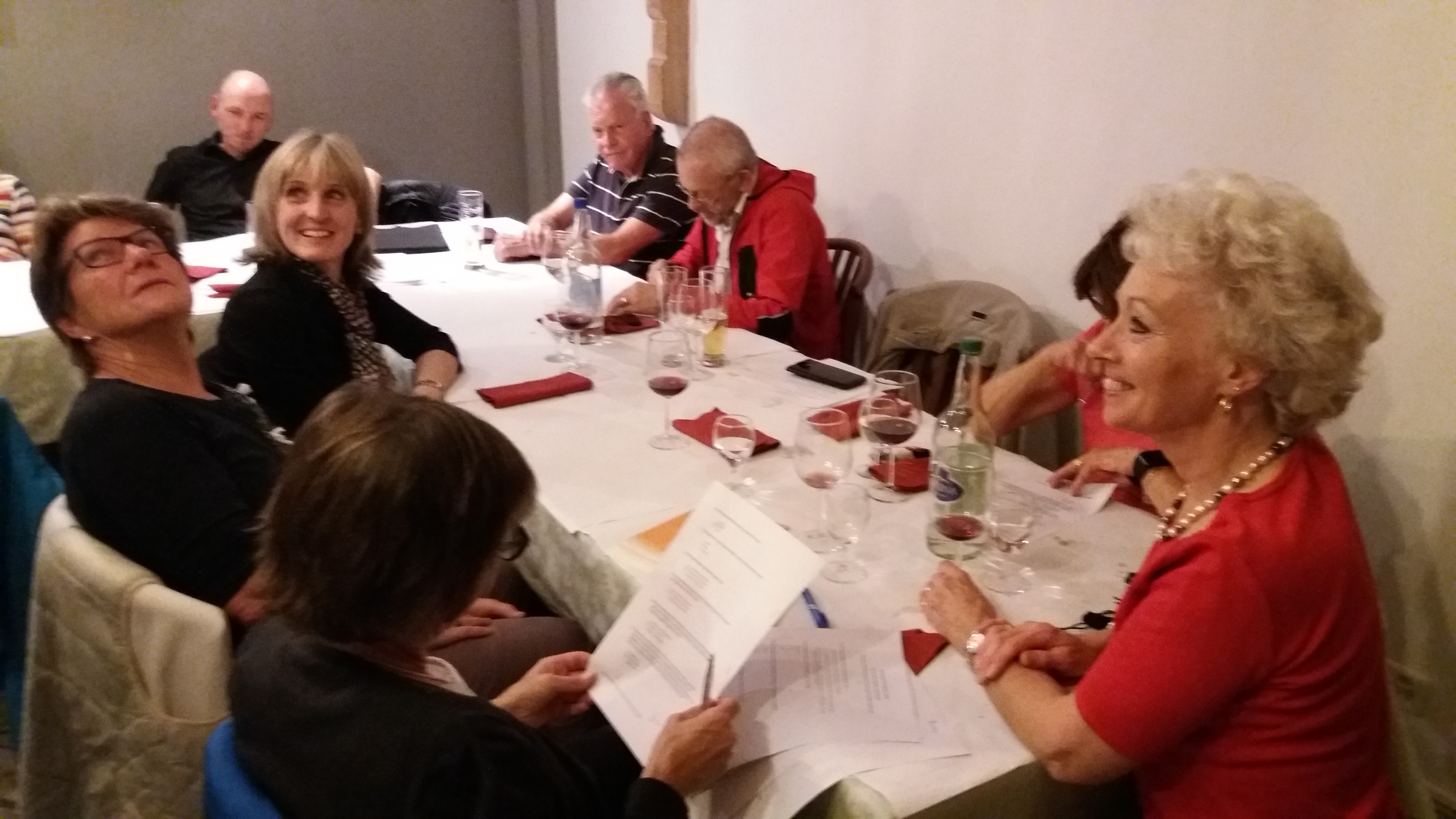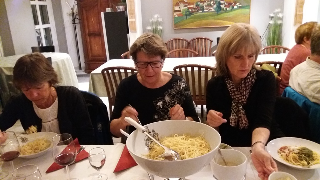 Wunderbar hatte “Muso”, der Frohsinn-Wirt und seine Angestellten, für uns im Säli gedeckt und eine schöne Spagettata vorbereitet. Alles klappte tip top, auch der Sportresultatedienst... namens Claude Künzli! Strahlend kam nämlich Claude ins Säli, um uns zu verkünden, dass Roger Federer den Achtelfinal an den Swiss Indoors in Basel gewonnen hatte. Nicht genug damit: er freute sich für und über “Rogi” derart, dass er sogar noch die von uns konsumierten Getränke bezahlte (es entzieht sich meiner Kenntnis, ob er mit Roger Federer einen Deal hatte und der Betrag dann bei dessen Preisgeld abgezogen wird und zu Claude retour fliesst...). Kurz und gut: auch im kleinen Kreis hatten wir einen fidelen Abend. Aufgelockert wurden die Gespräche mit einem Wettbewerb “rund um Gebenstorf-Turgi und die Laufszene”, an welchem Maus, Ur-Gebenstorfer und Insider halt, den ersten Preis gewann. Punktegleich folgte Frank, was beweist, dass eine Mitgliedschaft bei der LG Horn und Dauerläufe im Gebiet auch zu gutem Wissen beitragen können.