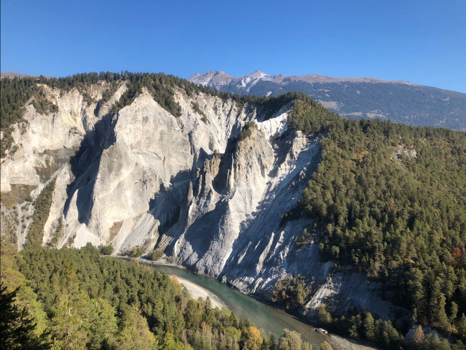 Es geht ab Ilanz durch die Schlucht des Vorderrheins, dort wo die chinesischen und amerikanischen Touristen im Glacier Express ihren Wein schlabbern, und nur ein schmaler Pfad entlang des Flusses entlangführt. Zum eingewöhnen erstmal 13 Km flach.