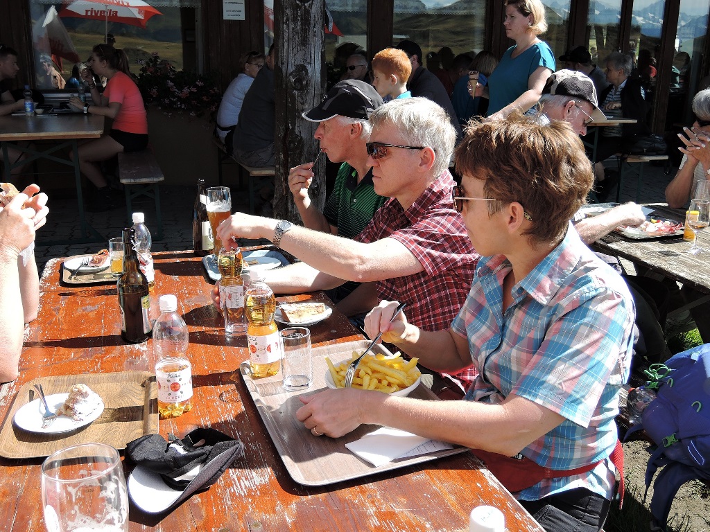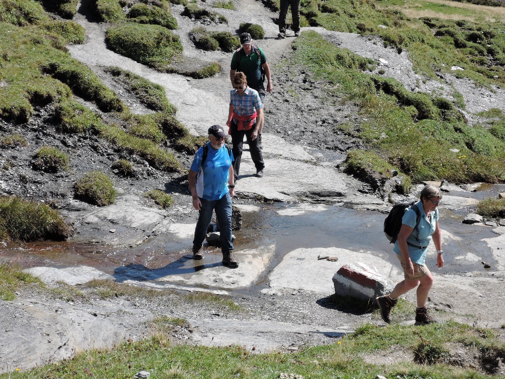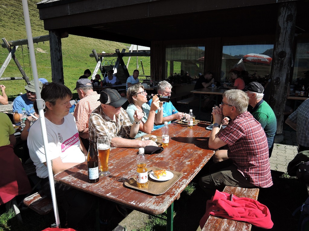 Wir marschierten danach Richtung Tannalp in hügeligem Gelände. Immer wieder blieben wir stehen und saugten die Atmosphäre in uns auf. Im Berggasthaus kehrten wir ein, waren wir doch schon deutlich über zwei Stunden unterwegs. Selbst hier auf fast 2000m war es schon unüblich warm und man war schon wieder geneigt den Schatten zu suchen.