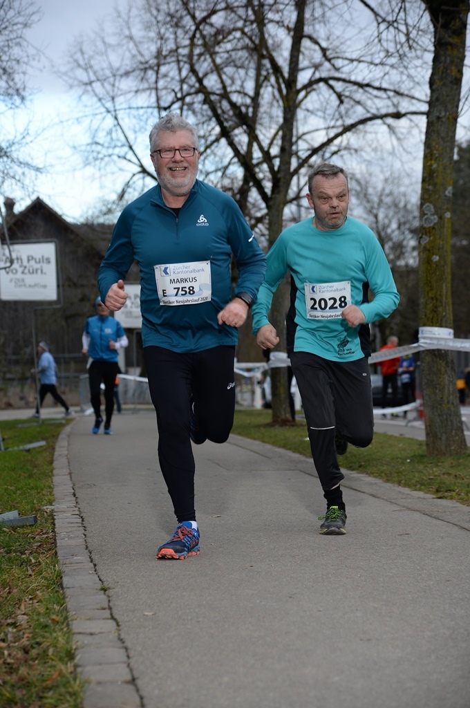 Beat Vosseler konnte seine hervorragende Leistung einmal mehr bestätigen. Hans Wiedemeier hatte zünftig Konkurrenz an dieser Veranstaltung. Wer über den Winter hindurch läuft ist, ist oft in Dietikon mit dabei. Markus war noch in der Erholungsphase einer Erkältung und es ging offensichtlich dem Kopf besser als dem Körper. Immerhin, es war noch Saft vorhanden um auf der langen Geraden des Zielanstieges (s)einen Hasen noch zünftig anzugreifen. Dieser, seines Zeichens «Pöstler», wechselte aber dann zur Eilpost. Nun, das Käsen hat mir speziellen Spass gemacht. Daas Tüpfli auf dem «i» ist das Plakat im Hintergrund: «am Puls von Züri».