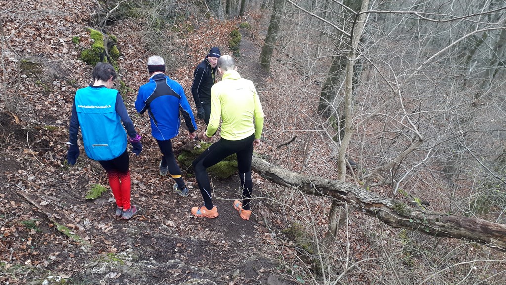 Einmal mehr konnte sich Ronald auch in dieser verhexten Situation auf seine Laufkollegen- und kolleginnen der LG Horn verlassen: am letzten Tag der Frist zeigten ihm diese den Weg vom Aussichtsplateau des Horns hinunter zur Höhle. Nicht nur das: die starken Kollegen – da waren die Frauen nun wirklich zu schwach – beseitigten sogar noch einen Baum, welcher der Sturm «Bianca» über den Wurzelweg gelegt hatte und ebneten so unserem Co-Präsidenten den Weg, damit er bequem und unfallfrei zur Hexenhöhle gelangen konnte.