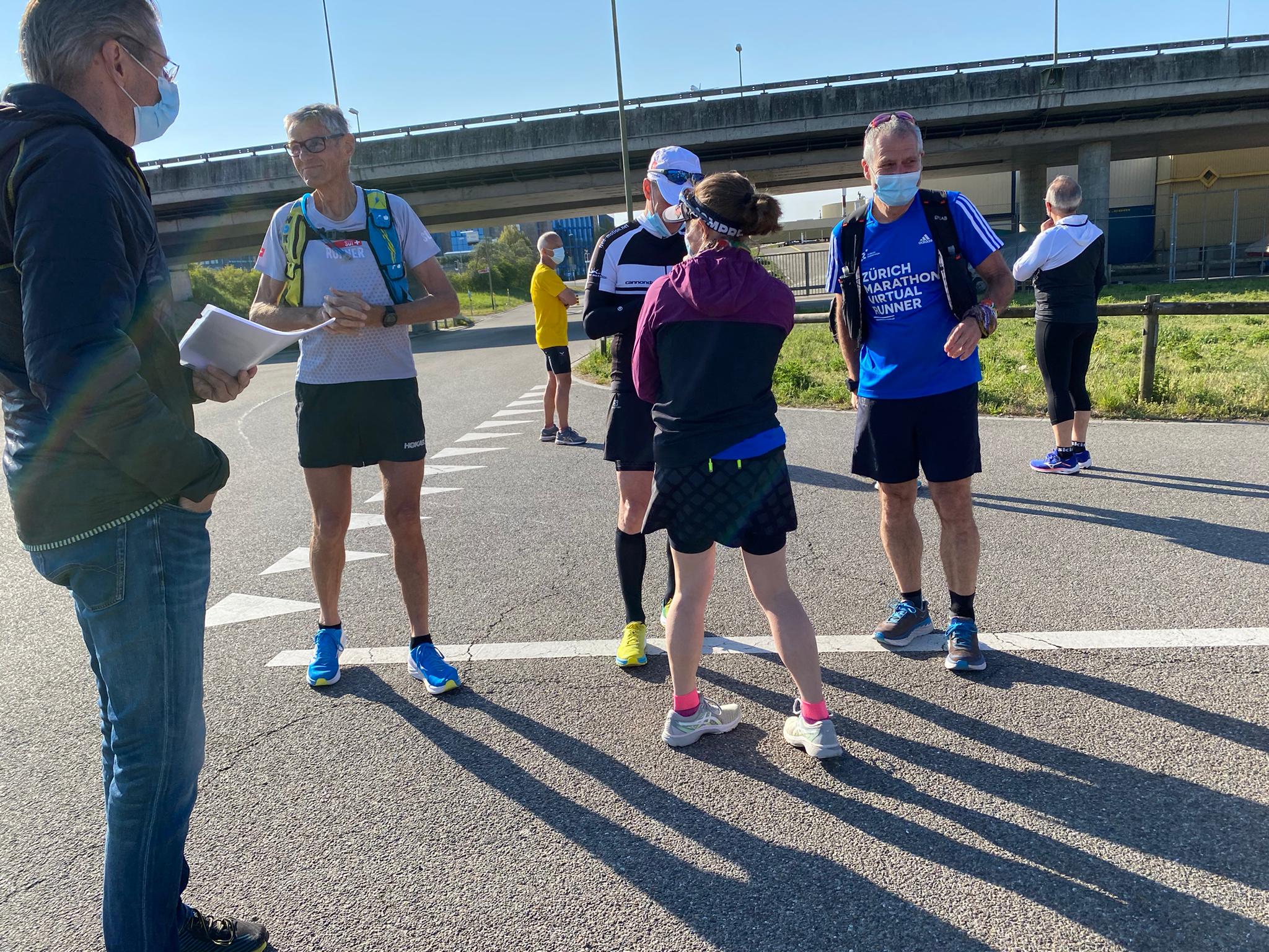 Ich entschied mich, bei Albisreisen mitzumachen. Markus Roth, der Geschäftsführer dieses auf Laufsportreisen und -ferien spezialisierten Reisebüros und momentan gar nicht zu beneiden, organisierte für seine Stammkunden einen corona-konformen Marathon im Glatt-Tal: Start und Ziel war beim Schützenhaus Opfikon (nähe Rest. Runaway, Glattbrugg) und die Strecke führte praktisch alles der Glatt entlang bis nach Glattfelden («letzte» grosse Brücke vor der Einmündung der Glatt in den Rhein) und retour. 60 Läufer*innen meldeten sich innert weniger Stunden an, wobei sich rund ¾ die Kurzvarianten Halb- und Dreiviertel-Marathon einschrieben. Für einmal musste Roth nicht Zimmer einteilen, sondern Gruppen bilden. Gar nicht so einfach, auf all die Wünsche von 4Min.45 – 6 Min.30 pro Kilometer und den verschiedenen Distanzen! Aber er schaffte es: innert einer halben Stunde – kurz vor und kurz nach 9 Uhr - schickte er rund 10 Läufergruppen auf die «glatte» Reise! Da es sich um eine (fast) Umkehrstrecke handelte (linke und rechte Glatt-Seite) waren die Verpflegungsposten eine einfache Sache. Es waren je zweimal dieselben. Aber nur schon, dass Albisreisen überhaupt Verpflegungsstationen organisierte, verdient grossen Dank. Und Roth, selber passionierter Läufer, vergass auch nicht, beim allerletzten Verpflegungsposten Coca-Cola bereit zu haben.