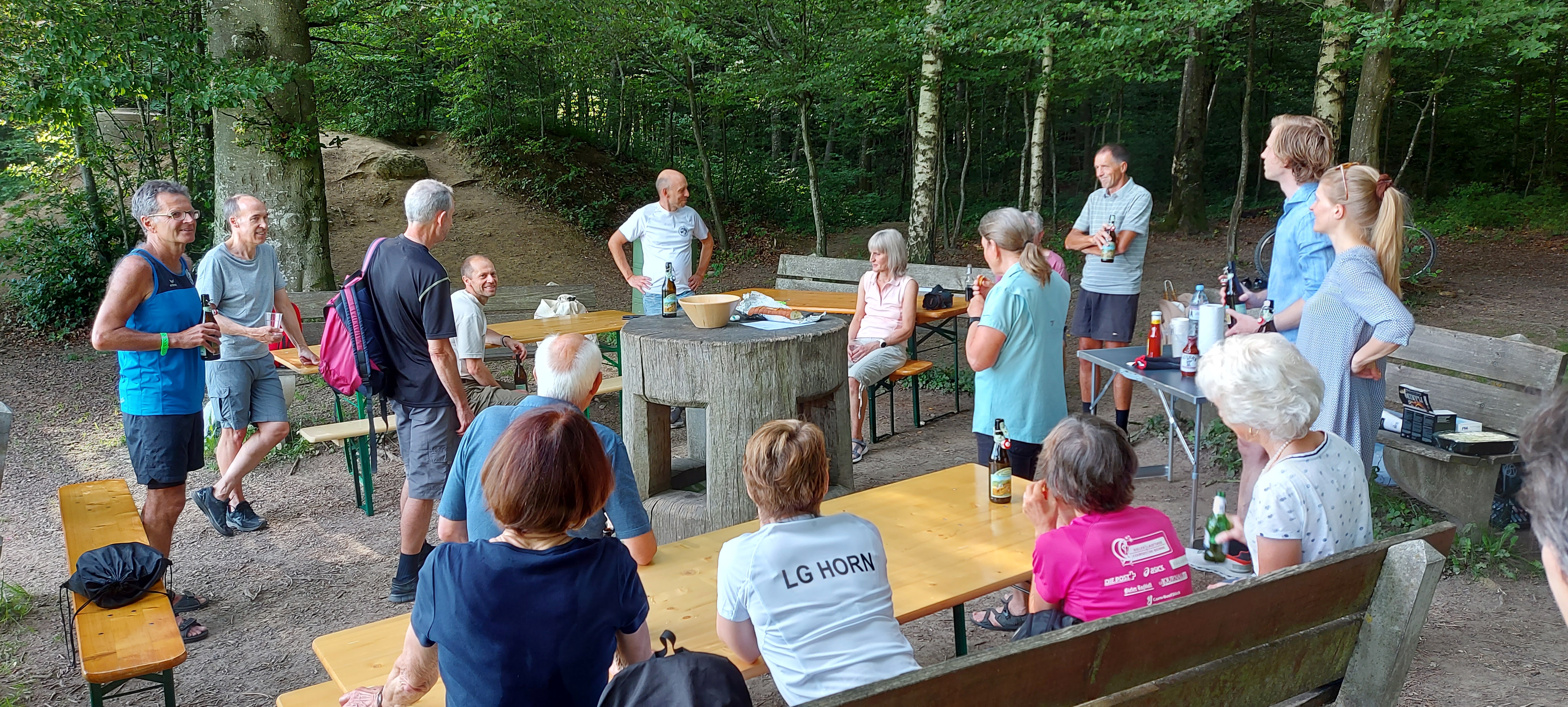 Der Bieler 100er fand dieses Jahr nicht statt, und der ist ja eigentlich der Anlass für das Hornbrötle - schade, aber Hauptsache wir konnten nach den Corona Monaten im Lockdown endlich wieder gemeinsam etwas unternehmen. Das fanden auch viele andere Mitgleider der LG Horn, so dass 19 Leute kamen.