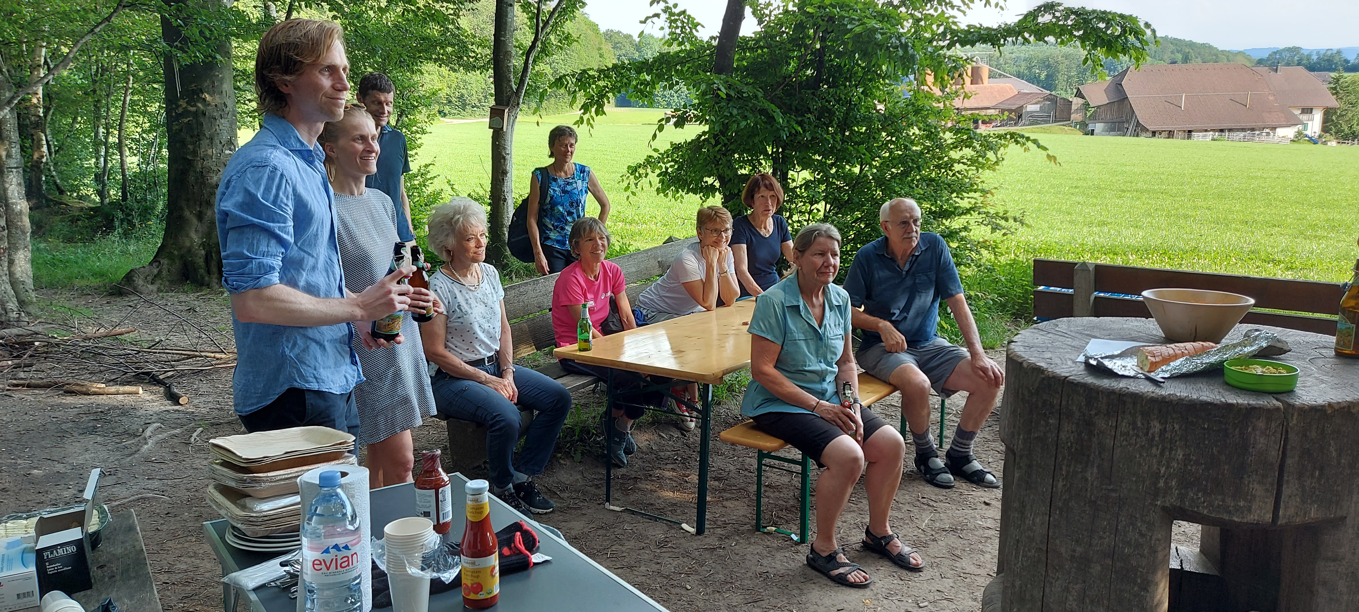 Ich hatte um 15:00h noch eine Besprechung im Homeoffice, und konnte mich danach doch noch von meiner Arbeit verabschieden, schnell noch eine Wähe machen, alles vorbereiten, das Auto vollpacken und losfahren. Habe ich alles eingepackt? 30 Grad, wie kühlt man da Bier? Haben wir genug Getränke? Ein stressiger Tag und umso schöner der Abend.