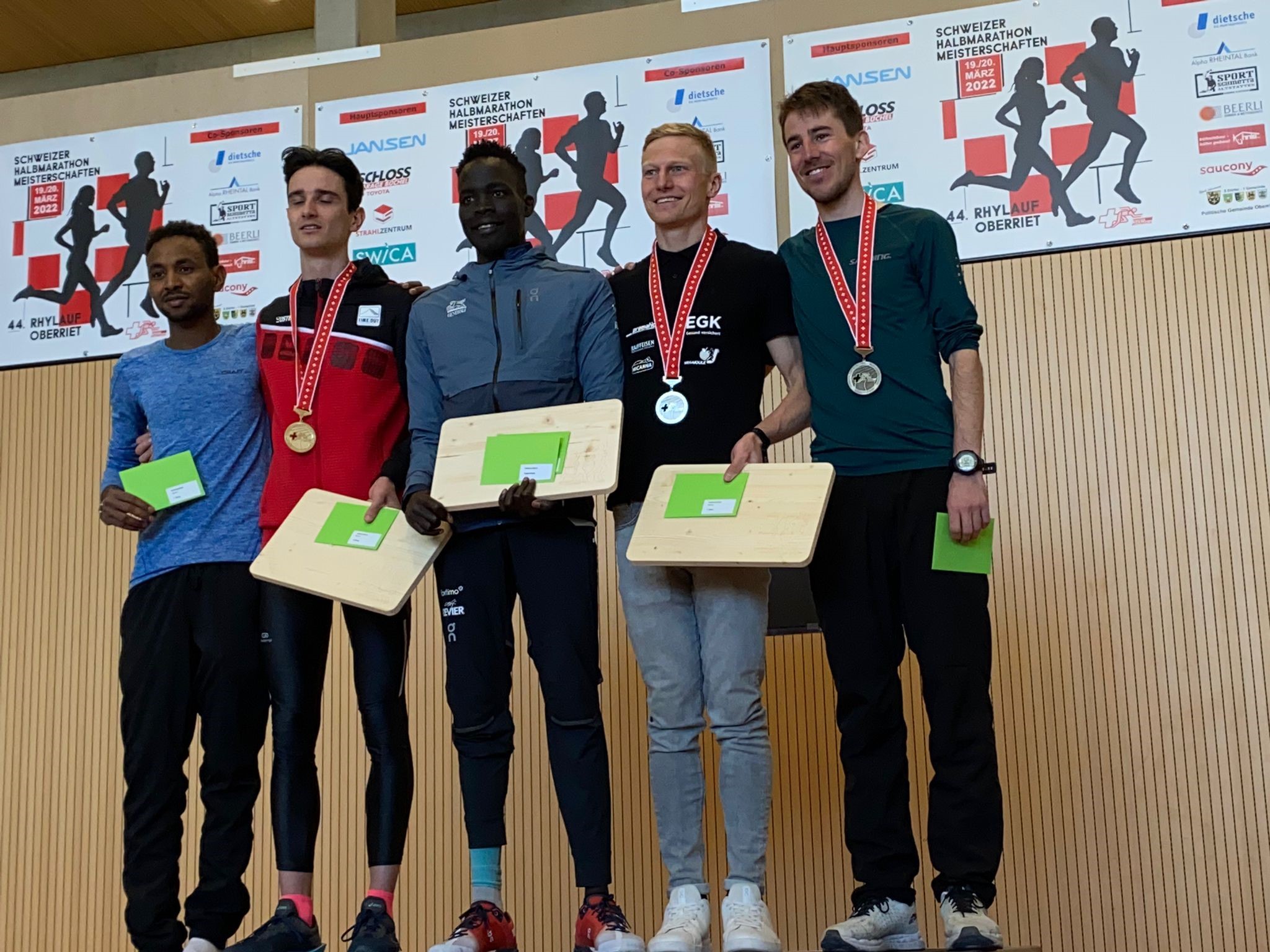 Nur ein halbes Jahr ist es her, seit am Sarnersee die Halbmarathon-SM 2021 ausgetragen wurde. Da die Strecke und die Organisation dieser SM alljährlich wechselt und in einen traditionellen Halbmarathon eingebunden ist, wars schon wieder soweit für das Jahr 2022. Die SM wurde nach Oberriet, ziemlich weit im Osten unseres Landes, vergeben und wurde vom KTV Oberriet, anlässlich des Rhylaufs organisiert. Eigentlich ist diese Strecke ein Leckerbissen für Freunde des schnellen, flachen Laufes. Ganze 48 Meter, wohl aus kleinsten Unebenheiten resultierend, zeigte meine Laufuhr am Ziel an. Es galt, viermal um die Dörfer Oberriet und Montlingen zu laufen, wobei die eine Seite dieses «Rechtecks» dem Nebenkanal des Rheins entlang führte. Für die Zuschauer war/ist dies sehr ideal, konnten sie doch gut zweimal, also insgesamt rund achtmal, «fanen», indem sie innerhalb des Rechteckes hin und her pendelten oder mit dem Velo fuhren. Alles ideal also… bis auf einen heftigen Wind, welcher den Läufern und Läuferinnen auf der einen Seite frontal entgegenblies (ich war vor zwei Wochen der Meinung, ich hätte den Malojawind für diesen Frühling endgültig verabschiedet, aber der Rheintalwind steht dem Malojawind in nichts nach, wie ich feststellen musste…).