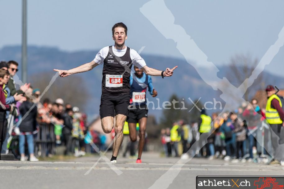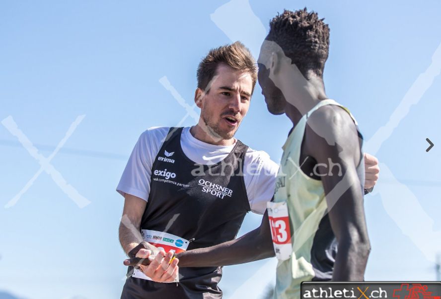 Der Start war fair. Man merkte, dass sich die Läufer*innen einzuteilen wussten im Startfeld. Schnell fand ich mein Tempo und sah auch bald Monica Hug, die superstarke W65er-in vor mir. Ich lief auf sie auf und fand ihr Tempo sofort «angenehm». Mal mit oder hinter einem «breiten» Mann, mal Monica vor mir, mal neben, mal hinter mir – von nun an liefen wir fast den ganzen Halbmarathon zusammen. Bei km 18 hatte ich das Gefühl, noch gut «ziehen» zu können und war überzeugt, vor Monica einzulaufen. Das liess sie nicht zu: Bei der Tafel, auf welcher «noch 500 m» stand, zündete sie den Turbo und liess mir nicht den Hauch einer Chance. Jä nu, für den Kategoriensieg reichte es allemal und ich ziehe vor Monica den Hut, in diesem Alter noch so spurten zu können. (Ich selber werde nicht mehr speziell «daran» arbeiten ?). Da der Lauf in Runden ausgetragen wurde, überholten uns die ersten Eliteläufer bereits gegen Ende der dritten Runde, also nach rund 14 Kilometern. Erst zog Dominic Lobalu, die Gazelle aus dem Südsudan, an uns vorbei, danach Eric Rütimann und danach Samuels Freund Patrik Wägeli, bekannt als «fastest farmer». Mir stockte fast der Atem, als kurz hinterher ein junger Mann im BTV Chur-Dress an uns vorbeizog. SAMUEL!!!! Ich konnte ihn sogar noch ziemlich lauthals unterstützen und freute mich, dass es eine Zeit lang ging, ehe die nächsten kamen. Dieser Umstand war wohl auch der Grund, weshalb die Elite-Zeiten nicht ganz so gut waren, wie die Volkslauf-Zeiten, mussten sich diese Eliteläufer doch praktisch durch das ganze Feld hindurch schlängeln auf ihrer letzten Runde! Vorallem an den Verpflegungsständen sei es manchmal brenzlig gewesen, berichtete Samuel später.
