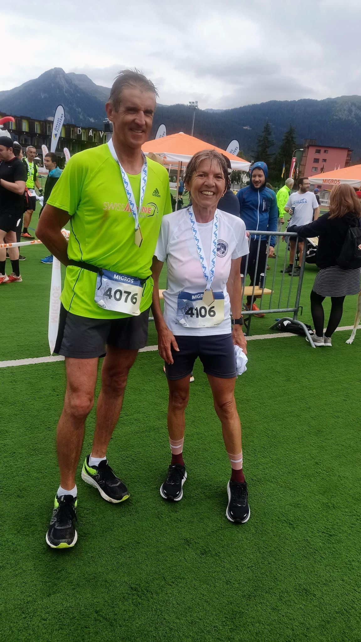 Ich tat mich sehr schwer mit meiner Streckenwahl. «Diamond» war kein Thema – aber der Goldene?! Nach langem Hin und Her entschied ich mich für den «Silber»-Lauf und war sehr, sehr froh um meine Wahl: Denn: kaum jemand im Unterland glaubt unseren Schilderungen nach der Rückkehr, dass wir bei rund 10 Grad (Start in Klosters) sowie teilweise Hagel und Schneefall (Gold- und Diamantläufer über die Pässe) sowie Regen laufen mussten. Ich empfand die Temperaturen und den Regen beim Silber-Lauf (ehemals K23) als kühl und ziemlich unangenehm und wollte mir ein Laufen auf dem Panoramatrail bei Nullgrad-Temperaturen gar nicht erst vorstellen. Da sich das Wetter aber während des ganzen Tages abwechselte, es gab sogar Sonnenschein, dann wars wieder bewölkt, usw., blieb die Veranstaltung von grösseren medizinischen Schwierigkeiten verschont. Gut so! Denn: die Davoser gaben sich alle Mühe, uns einen schönen, stimmungsvolle Anlass zu präsentieren. So fand ich es eine tolle Idee, dass ich nach meinem Einsatz auf der Grossleinwand im Stadion den «K68» verfolgen konnte. Etwas, was ich auch noch nie erlebt habe und was ich als gar nicht so schlecht empfand: man erhielt am Start einen (faltbaren!) Mehrwegbecher, welcher mitzutragen war und mit welchem die flüssige Verpflegung eingenommen werden musste. Auch ich war vor dem Start skeptisch, aber es funktionierte tatsächlich! Ganz im Sinne von: «Oepper mues jo met Omwältschotz afoh… au im Chline!». Ebenso berücksichtigte man bei Vielem das einheimische und regionale Gewerbe. Ob der Davoser «X-Trail» ein Super-Erfolg werden wird, bezweifle ich – leider – trotzdem. Zuviele andere «Kraxliläufe» finden im Sommer in ganz Europa statt und die nehmen sich natürlich gegenseitig Teilnehmer weg (bereits eine Woche nach dem «X-Trail» findet in unmittelbarer Nähe der «Irontrail» statt und der «Gondo-Marathon» ist ja auch nicht am Ende der Welt). Persönlich sehe ich es so: Wir – mittlerweile 55 – ca. 80-Jährigen – haben in den Anfangszeiten des Swissalpine eine wunderbare Lauf-Zeit erleben dürfen und das kann uns niemand mehr nehmen! Ganze Gruppen aus Skandinavien, den Benelux-Ländern und Deutschland kamen für eine oder zwei Wochen nach Davos angereist und trugen so zu einer ganz besonderen Stimmung bei. Rückblickend bin ich persönlich unglaublich dankbar um diese Vergleiche mit den damals besten Ultraläuferinnen aus allen Ländern. Auch sie waren «nur» Läufer und hatten mit den Tücken der Strecken(länge) zu kämpfen. «Nur Menschen» waren diesmal auch Dario Cologna und Jason Rüesch. Bescheiden standen sie im Startfeld des 23ers in Klosters und gaben, 5 Minuten vor dem Start (!), mitten im Startfeld (!) seelenruhig Interviews. Jason Rüesch beendigte den 23er als 3. und Dario Cologna wurde 6., wobei er eine leise Enttäuschung nicht verbergen konnte. Der 23er war übrigens rund 800 m, bzw. 4 Minuten, «länger» als bei den letzten Ausgaben. Grund: der Start war (praktischerweise) gleich hinter dem Bahnhof Klosters, bei der Mehrzweckhalle, wo wir uns umkleiden konnten. Mir liefs gut. Natürlich hatte ich auf den schrägen Wiesenpassagen beim Rückweg aus Monbiel zum Eingang der Selfrangaschlucht etwas zu kämpfen. Dies ist nicht meine favorisierte Unterlage. Die Schlucht hoch gings für eine ältere Dame passabel und nach dem Wolfgangpass kam ich so richtig in einen guten «Flow». Zusammen mit einem jungen Mann überholte ich noch zwei Frauen und etliche Männer. Nach der Kreuzung der Flüelapass-Strasse bog dieser junge Mann ebenfalls in Richtung Flüelapass ab. Kurz studiert («das goht doch rächts weg»), aber dennoch dem jungen Läufer hintennach… in die Sackgasse vor dem Bikepark… Rechts umkehrt und all den vorher «Geschnappten» hinterherlaufen! Gemäss meiner Sportuhr kostete uns dieses Malheur genau 1 Minute 35 Sekunden… Aber ich kann Euch sagen: meine Moral war angeknackst und plötzlich gings nicht mehr so locker. Zum Glück stand mein Bruder Bruno noch eingangs Dischmatal, rund 3 km vor dem Ziel, was ein Aufsteller war. Ich schnappte zwar nochmals einige Läufer, aber die Luft war draussen. Trotzdem war ich mit meiner Zeit von 2h 17.43 zufrieden am Ziel. Schön, dass mit Brigit Humbel eine Frau aus dem Nachbardorf Birmenstorf Kategorienzweite wurde bei den 60-Jährigen. Gefreut hat sich auch Kollege Beat Ummel aus Suhr, welcher 3. ‘bei den 60-jährigen Männern wurde. Aus dem unteren Aaretal lief noch Edith Zihlmann gut mit. Fazit: mir hats sehr gefallen und es wäre schön, wenn die Schweizer Laufgemeinde die Anstrengungen des neuen Davoser OK’s honorieren würde und inskünftig ende Juli wieder einen Abstecher ins Landwassertal machen würde.