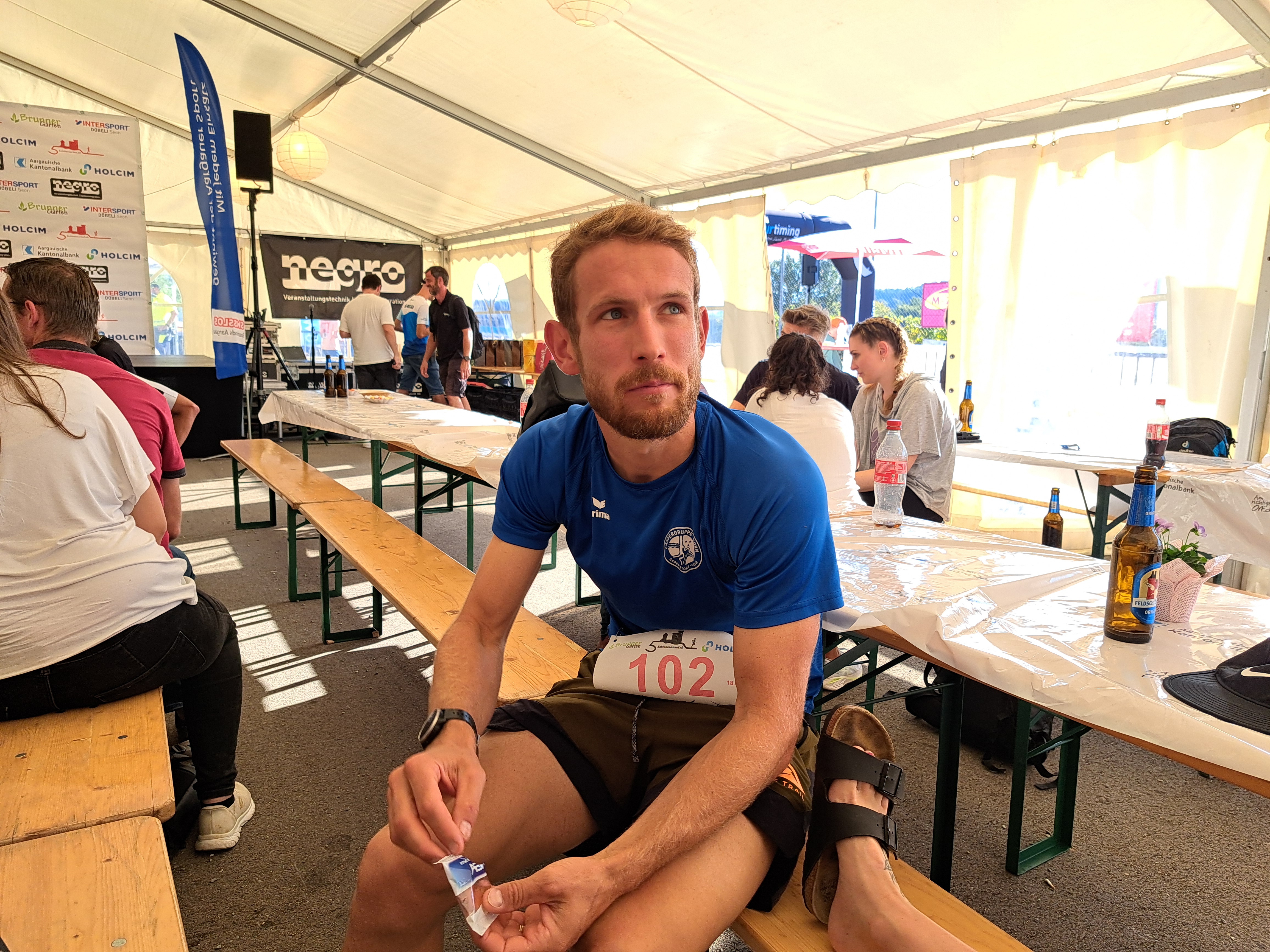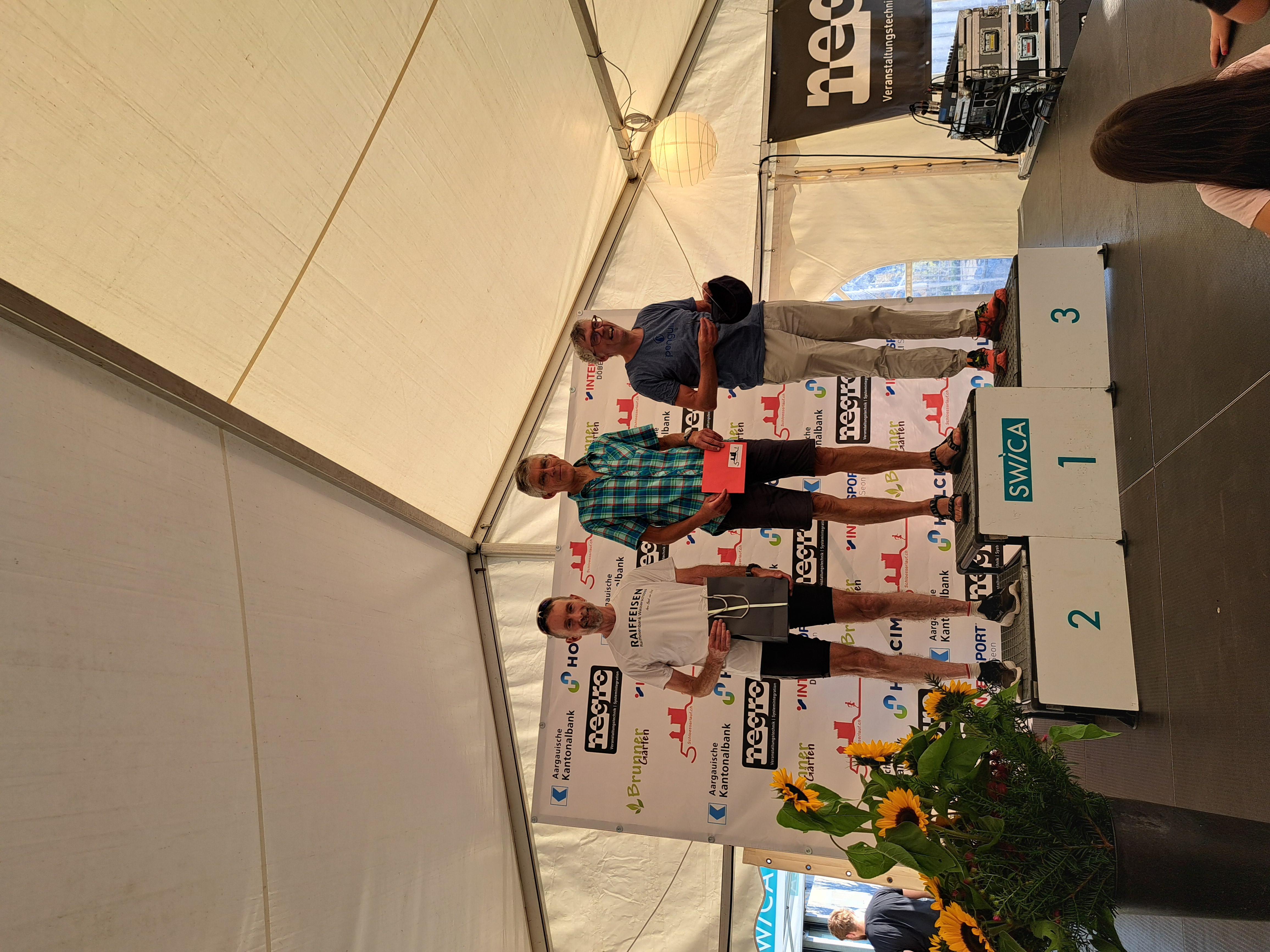 Das hielt die teilnehmenden Hörner jedoch nicht davon ab gute Leistungen zu zeigen. Auf eindrückliche Art tat dies Manuel. Mit einer 1:26er Zeit überquerte er die Ziellinie. Damit schaffte er es nicht nur als Dritter aufs Kategorienpodest. Overall belegte er sogar den siebten Rang. Knapp neben dem Podest landete Jaqueline. Ihr gelang ein wirklich guter Lauf. Dafür reichte es Dominic in seiner Kategorie zum zweiten Platz. Auch er bewältigte den anspruchsvollen Lauf auf souveräne Art. Meine Wenigkeit bestieg auch noch als Zweiter das Podest. Ich war wirklich zufrieden mit dem Lauf. Nur beim letzten Downhill plagten mich Krämpfe und ich musste tatsächlich kurz anhalten und dehnen. Andrea empfing uns als Fan im Ziel und konnte uns die Resultate gleich mitteilen.